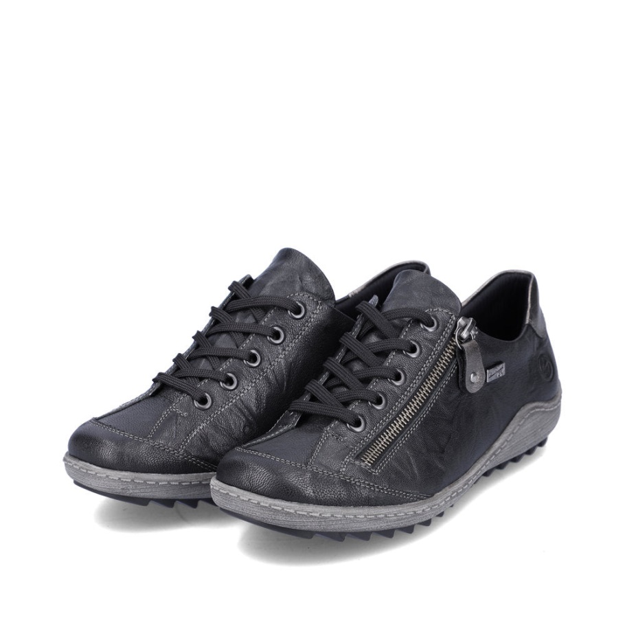 Hier Ist Ein Entzückender, Wasserabweisender Ledersneaker, Der Ihren Stil Ergänzt Und Gleichzeitig Das Beste Aus Moderner Mode-Komfort-Technologie Bietet. Mit Seiner Verstellbaren Schnürung, Dem Seitlichen Reißverschluss Zum Einfachen An- Und Ausziehen, Der Memosoft-Dämpfung Und Der Gummierten Außensohle Gehen Sie Mit Gepolstertem Vertrauen. Die Ganze Saison Lang. Material: Leder.