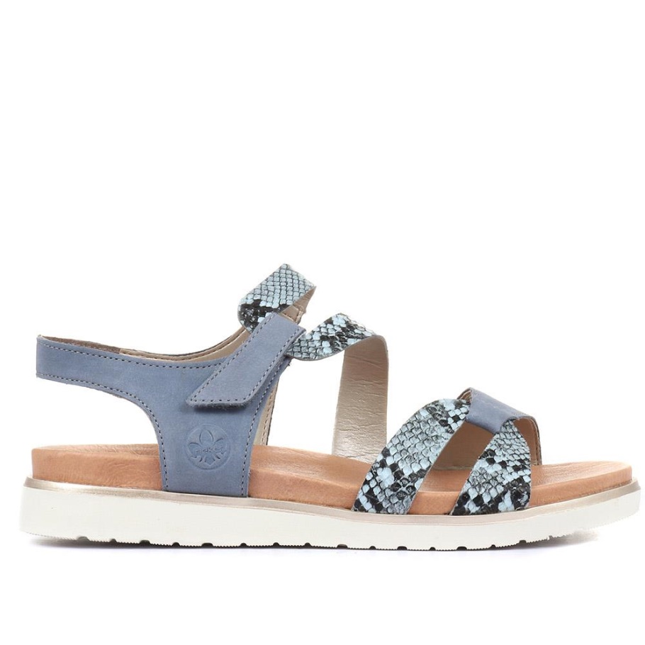 Rieker Blaue Flache Riemchensandalen