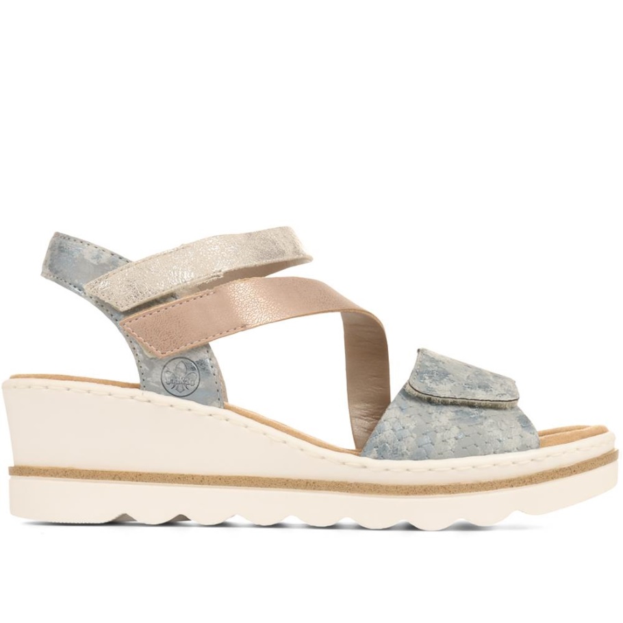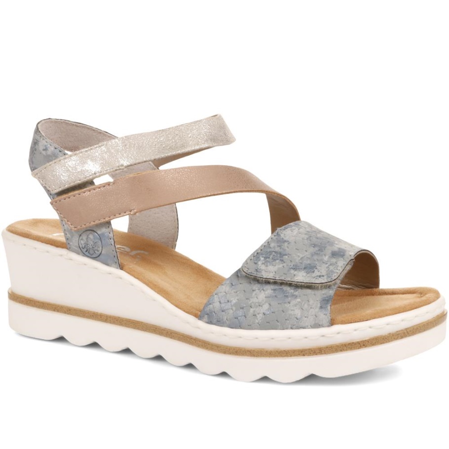 Rieker Blaue Mehrfach Verstellbare Keilsandalen