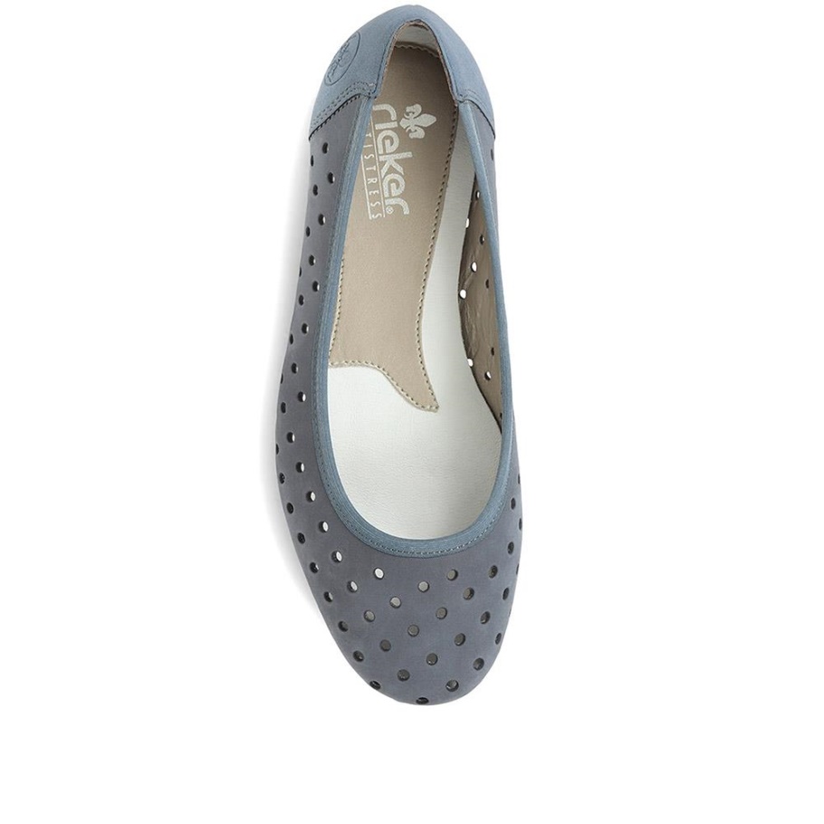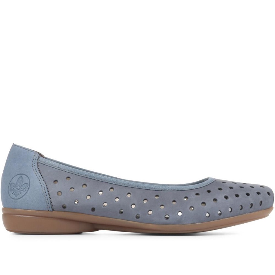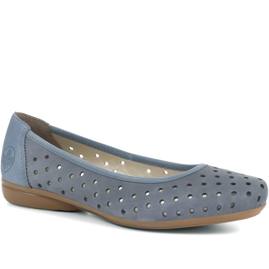 Der Schlupf-Ballerina Von Rieker Ist Ideal Für Damen, Die Ihrer Lässigen Sommergarderobe Einen Eleganten Alltags-Style Verleihen Möchten. Mit Perforiertem Lederobermaterial Für Zusätzliche Frische Den Ganzen Tag über Bieten Diese Ballerinas Ein Bequem Gepolstertes Fußbett Und Einen Niedrigen Absatz Für Zusätzlichen Halt. Die Flexible Außensohle Hat Stoßdämpfende Eigenschaften, Um Ermüdung Der Füße Vorzubeugen, Damit Du Leichtfüßig Durch Den Tag Gehst.