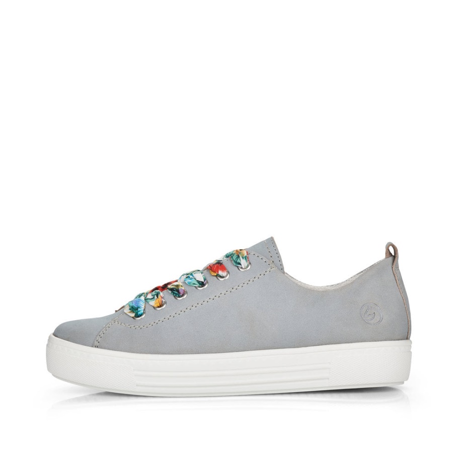 Dieser Sneaker Von Remonte Hat Ein Obermaterial. Aus Hochwertigem, Extra Weichem Wildleder. Die Kontrastsohle In Weiß Setzt Mit Ihren Zwei Blauen Akzentstreifen Den Angesagten Look Fort. Der Natürliche Look Des Ledersneakers Wird Unterstützt Durch Das Edle Finish, Die Dunklere Farbe Der Applikation An Der Ferse Und Der Schnürung.