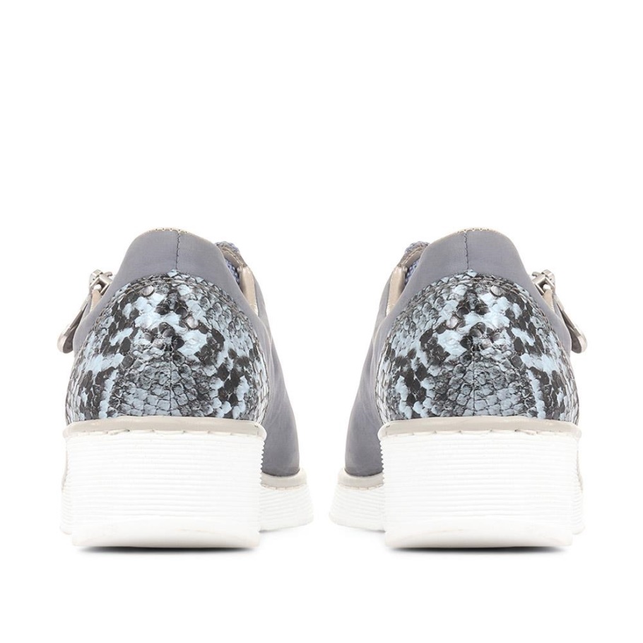 Dieses Stilvolle Paar Sneaker Mit Keilabsatz Fügt Sich Nahtlos In Ihre Sommergarderobe Ein. Vorgestellt In Einer Schnür-silhouette, Das Obermaterial Ist Aus Glattem Material, Mit Einer Schlangenlederkappe An Der Ferse Und Einem Klassischen Rieker's-seitenreißverschluss. Auf Einer Flexiblen Keilaußensohle Für Eine Bequeme Steigerung Der Höhe Gelegen, Verfügt Die Innenseite über Ein Gepolstertes Fußbett Mit Einer Zwischensohle Mit Hoher Rückprallkraft Für Zusätzlichen Komfort Bei Jedem Schritt.