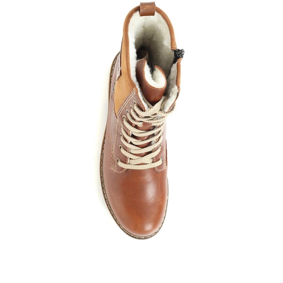 Vorgestellt In Einer Klassischen Schnürstiefel-silhouette Sitzen Die Damenstiefel Auf Einer Erweiterten Knöchelhohen Höhe Und Bieten Vielseitigen Tragekomfort. Die Stiefel Mit Kontrastierendem Obermaterial Sind Mit Einem Innenreißverschluss Gesichert Und Mit Weichem, Kuscheligem Futter Für Eine Bequeme Passform Gefüttert.