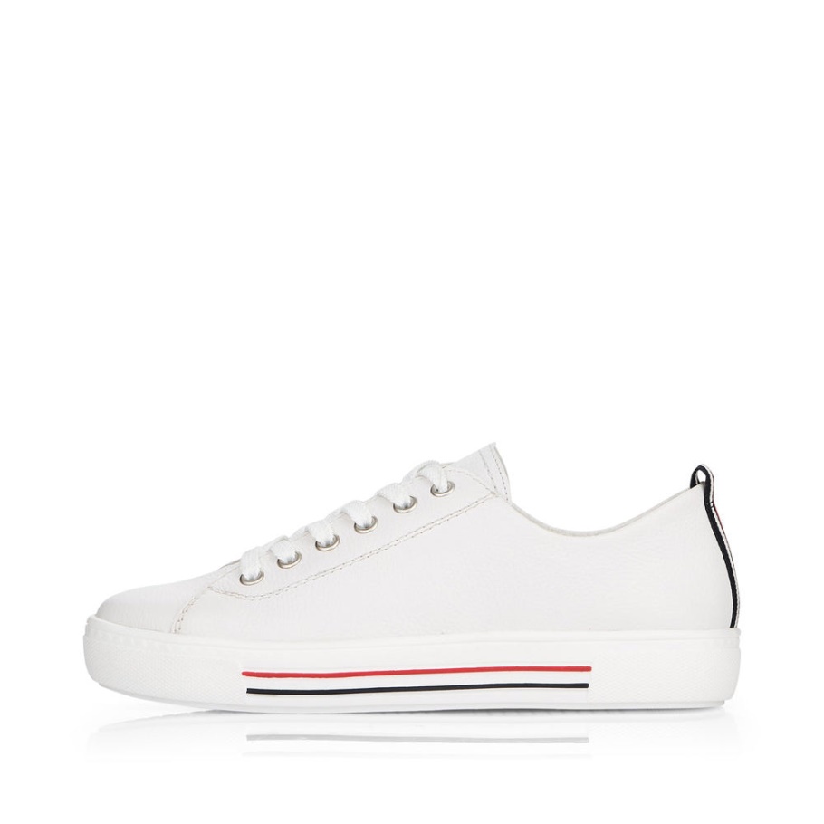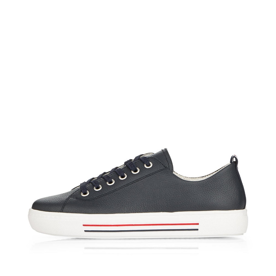 Dieser Sneaker Von Remonte Hat Ein Obermaterial. Aus Hochwertigem, Extra Weichem Wildleder. Die Kontrastsohle In Weiß Setzt Mit Ihren Zwei Blauen Akzentstreifen Den Angesagten Look Fort. Der Natürliche Look Des Ledersneakers Wird Unterstützt Durch Das Edle Finish, Die Dunklere Farbe Der Applikation An Der Ferse Und Der Schnürung.