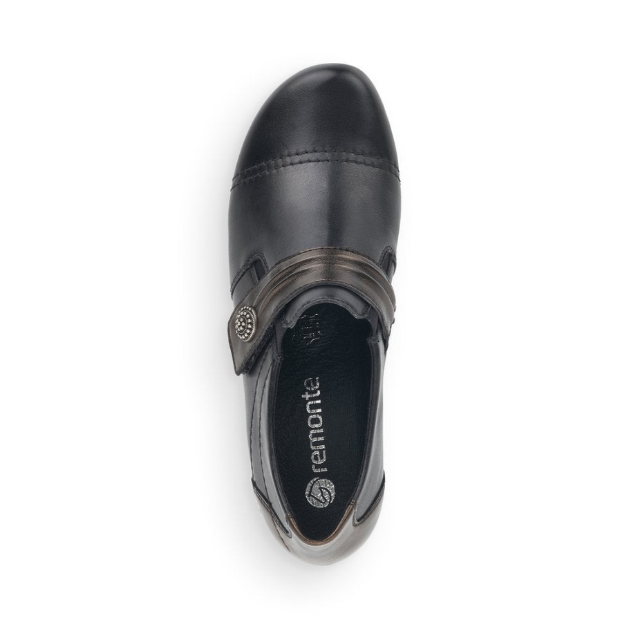 Diese Eleganten Pumps Von Remonte Haben Einen Praktischen Klettverschluss, Schwarz-antikes Glattleder Und Sogar Die Innensohle Ist Aus Hochwertigem Leder! Die Einlegesohle Ist Einfach Auszutauschen. Die Perfekten Pumps Für Jedes Party-Outfit!